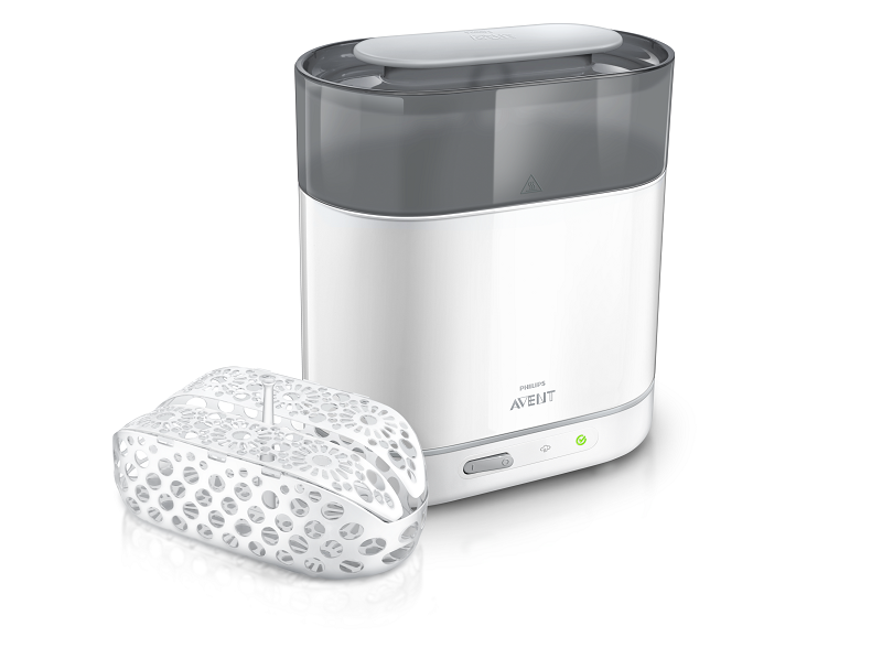 A Philips Avent elektromos gőzsterilizálók, állítható méretüknek köszönhetően, kevesebb helyet foglalnak és bármilyen széles vagy keskeny nyakú cumisüveggel használhatóak. A 4 az 1-ben változat beépített mosogatókosárral rendelkezik, így az eszközöket kényelmesen előtisztíthatod, a kijelző segítségével pedig nyomon követheted a sterilizálás folyamatát.